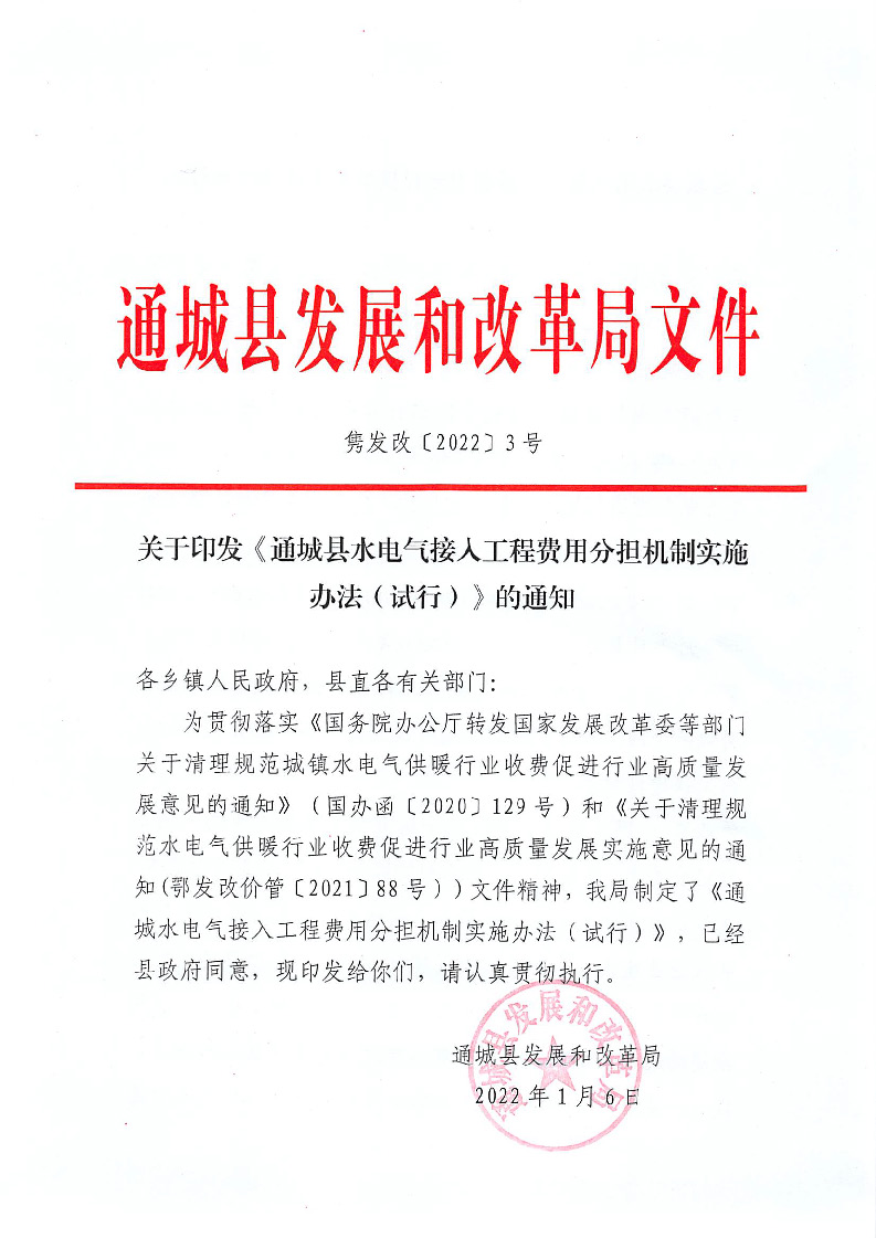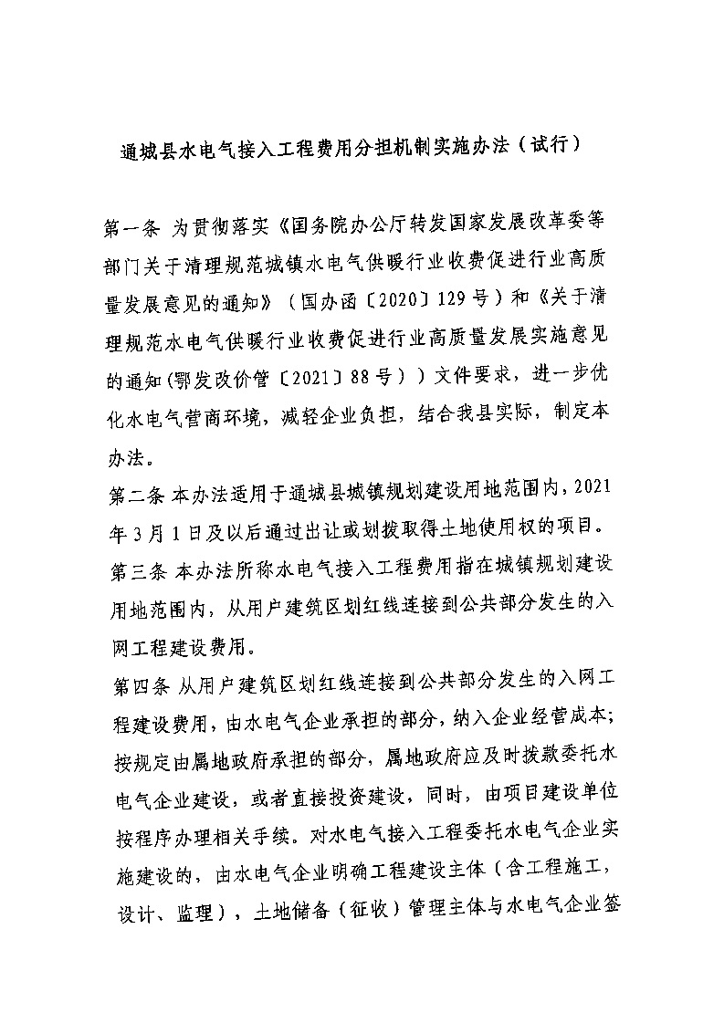 通城縣水電氣接入工程費用分擔(dān)機制實施辦法(試行)的通知